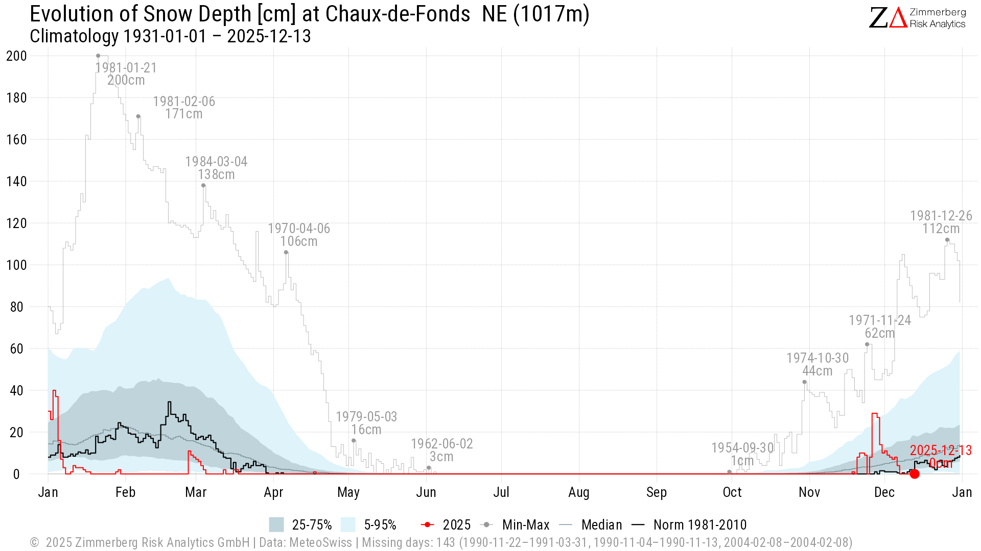 Winter Statistics for Chaux-de-Fonds NE (1017m)