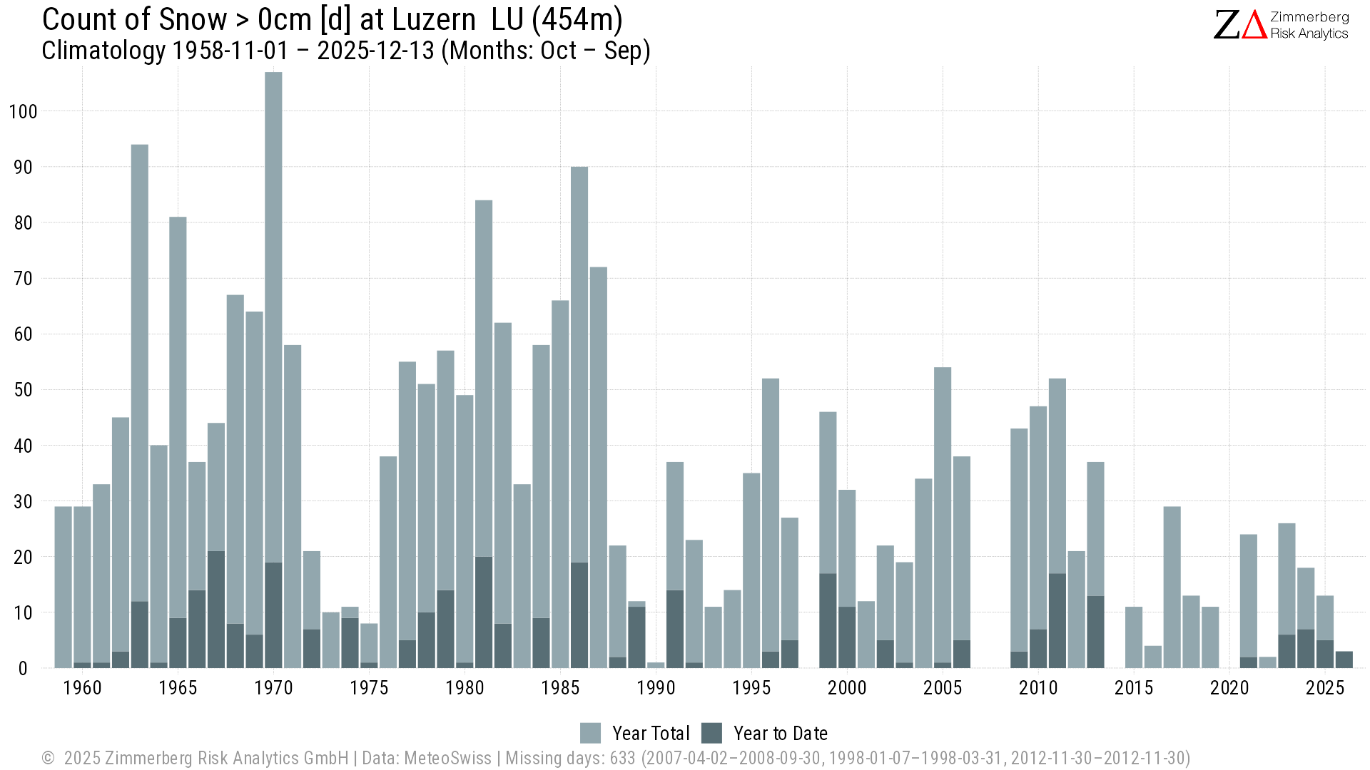 For some winter statistics the (Swiss) Hydrological Year is taken as reference. It starts on 1 Oct and ends on Sep 30.