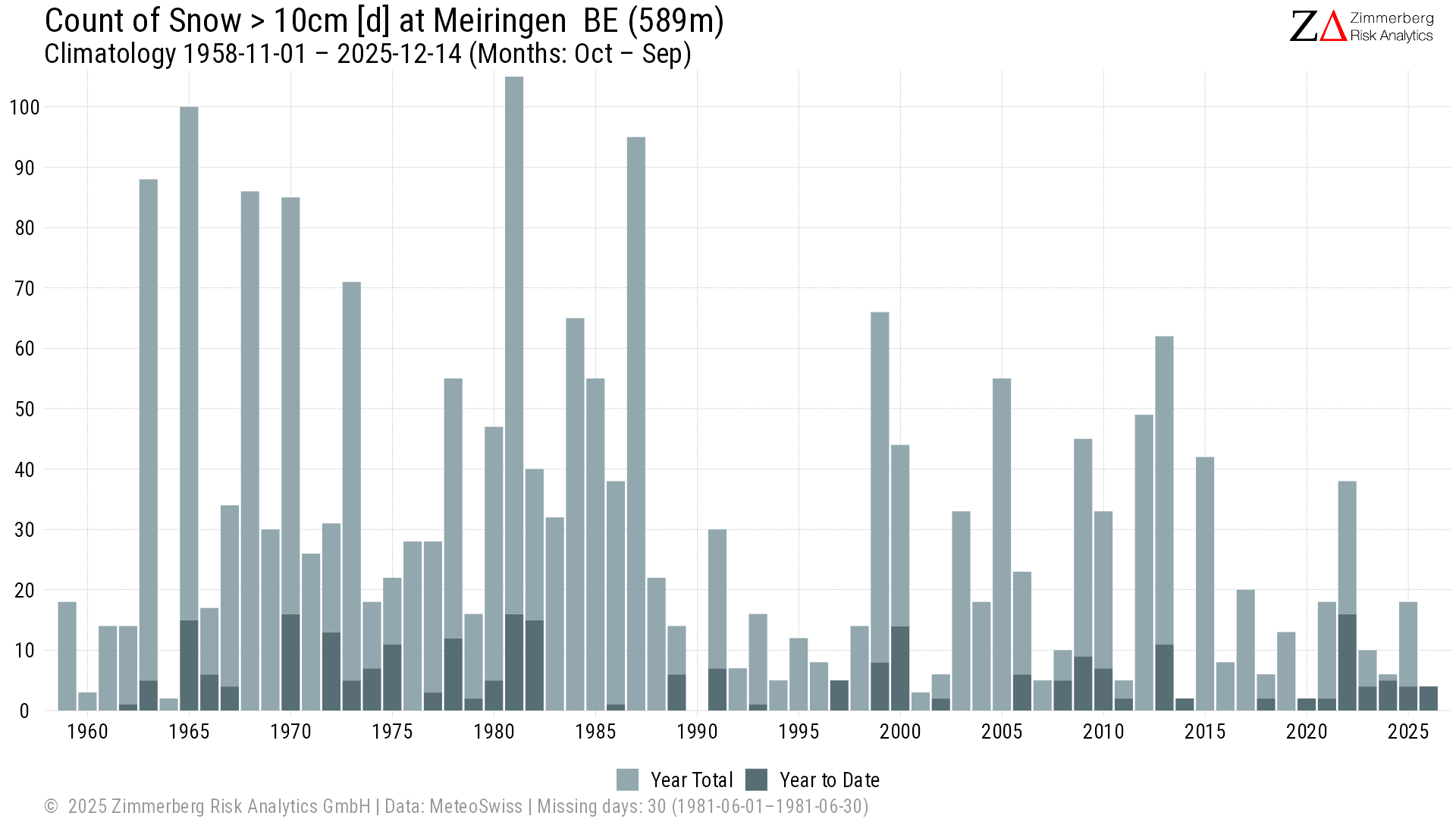 For some winter statistics the (Swiss) Hydrological Year is taken as reference. It starts on 1 Oct and ends on Sep 30.